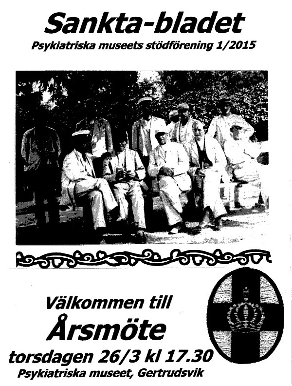 Välkommen att besöka oss idag mellan kl 14-17 ! Ni som är medlemmar i Psykiatriska museets stödförening är hjärtligt välkomna till årsmötet kl 17.30. Det blir som vanligt gott fikabröd från Fridkulla. Du kan läsa medlemstidningen som PDF-fil – ladda ned här (2 MB stor). Där finns bla en förkortad verksamhetsberättelse över det som hände på museet 2014.