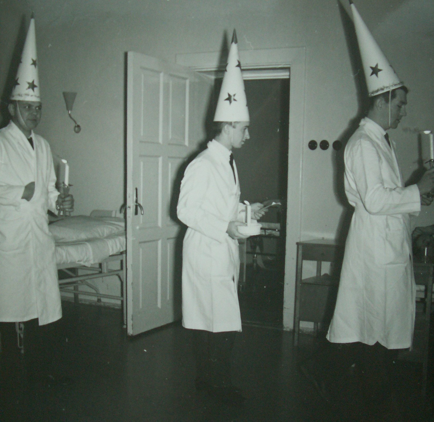Dagens bild på Julkalendern 12 december ! dec 12, 2015 | Ur fotoarkivet Stjärngossar på S:ta Gertruds sjukhus lussar för patienterna på 1950-talet Luciatåg S:ta Gertruds sjukhus 1950-talet