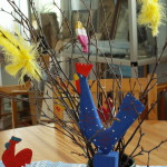 ”Påsken är starkt förknippad med ris, så kallat fastlagsris eller påskris. I vår tid köper vi ris som prydnad, medan det i bondesamhället hade en starkare symbolisk innebörd av lidande men också lekfullhet. Under långfredagen användes ris för att låtsaspiska varandra, en sed som är känd åtminstone sedan 1600-talet i Sverige. Påskriset är mer att betrakta som ett rent dekorationsris, som blev vanligare under 1800-talet. Att påskliljor förknippas med påsken, liksom den gula färgen, är sentida drag i påskfirandet. På en del håll i Sverige skriver och ritar man ännu påskbrev, med skämtsamma och retfulla verser och teckningar.